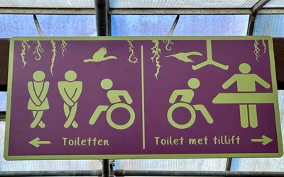 Zowel bij het restaurant als in het park zijn toiletten aanwezig. Het invalidentoilet bevindt zich achter in het park, waar ook een invalidentoilet met tillift beschikbaar is.