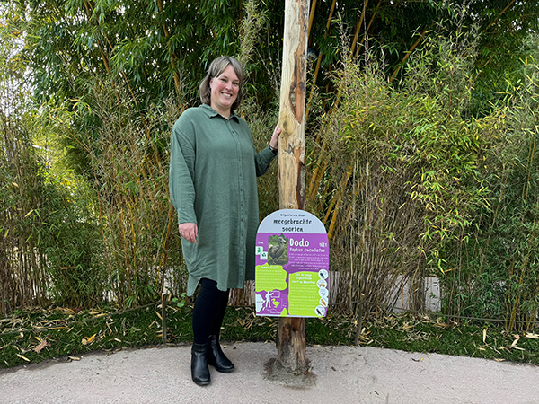 Jolanda van Hemert (42) uit Lelystad schoolde zich om van leerkracht tot DTP’er en kwam via een stageplaats bij Almere Jungle terecht als vrijwilliger. Nu werkt ze al een jaar aan alle bebording in het park. “Ik vond het geweldig, de eerste keer dat iets wat ik had ontworpen ook geproduceerd werd! Dat was voor mij al heel wat”, vertelt ze lachend.